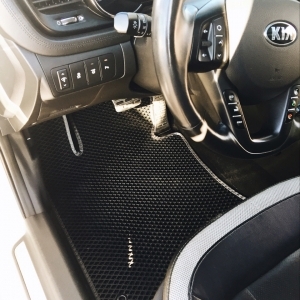 Автоковрики EVA в салон и багажник Kia Optima III (2011->2015) не позволят пыли, воде, снегу или грязи попасть на пол вашего автомобиля. Уникальная ячеистая структура ковриков способствует равномерному распределению влаги и различного мусора, а высокие бортики ячеек не позволят распространиться грязи по салону вашего автомобиля.